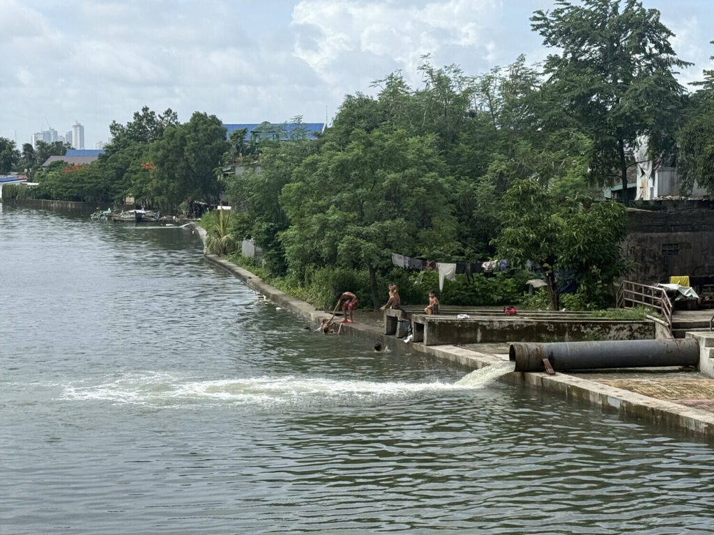 A las 9:30 crucé el puente que conecta Navotas con la ciudad de al lado llamada Malabón. En el puente había una especie de mercado, y tan pronto como terminaba el mercado arrancaba el agua de vuelta: