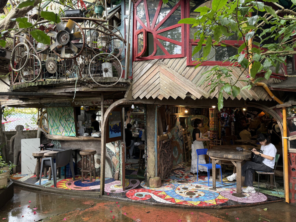 El otro sitio que tenía para visitar también quedaba cerca, y se llamaba Ili-Likha Artist Village. Se trataba de un vibrante espacio creativo con edificaciones en varios niveles construidas alrededor de árboles, usando materiales reciclados como madera recuperada, botellas de vidrio, marcos de ventanas, restos de bicicletas y mosaicos. También se encuentran varios restoranes que ofrecen desde comida vegetariana/vegana hasta platos con influencia local e internacional.
