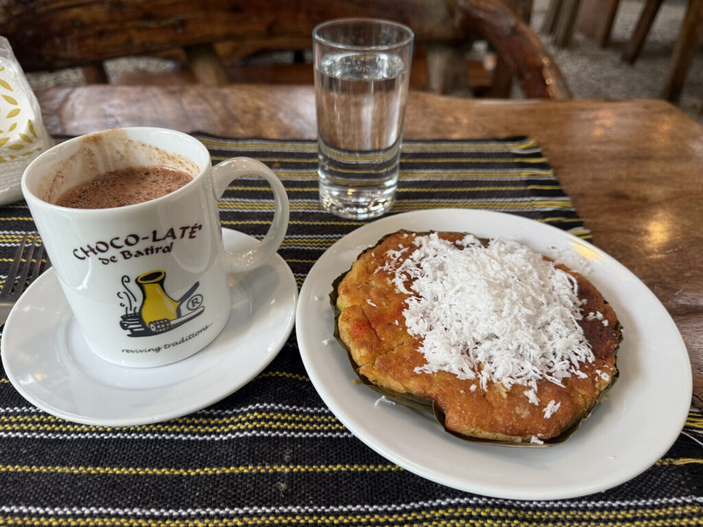 Me pedí una taza de chocolate caliente y un cheese bibingka.