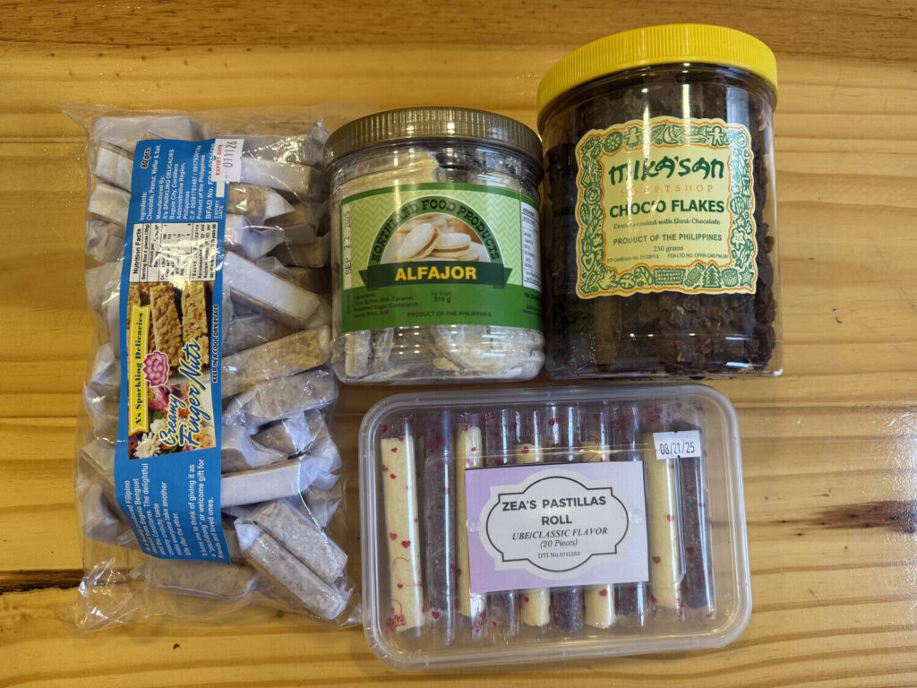 Sí: los filipinos también tienen alfajores, aunque son de caramelo y no de dulce de leche como en Argentina. Los choco flakes al parecer son un clásico de la región, al igual que la pasta de ube (que también compré al día siguiente, por ₱90, para regalarle a Mark). Luego estaban las pastillas, cuyo sabor clásico es leche, pero estas que compré también venían en sabor ube.