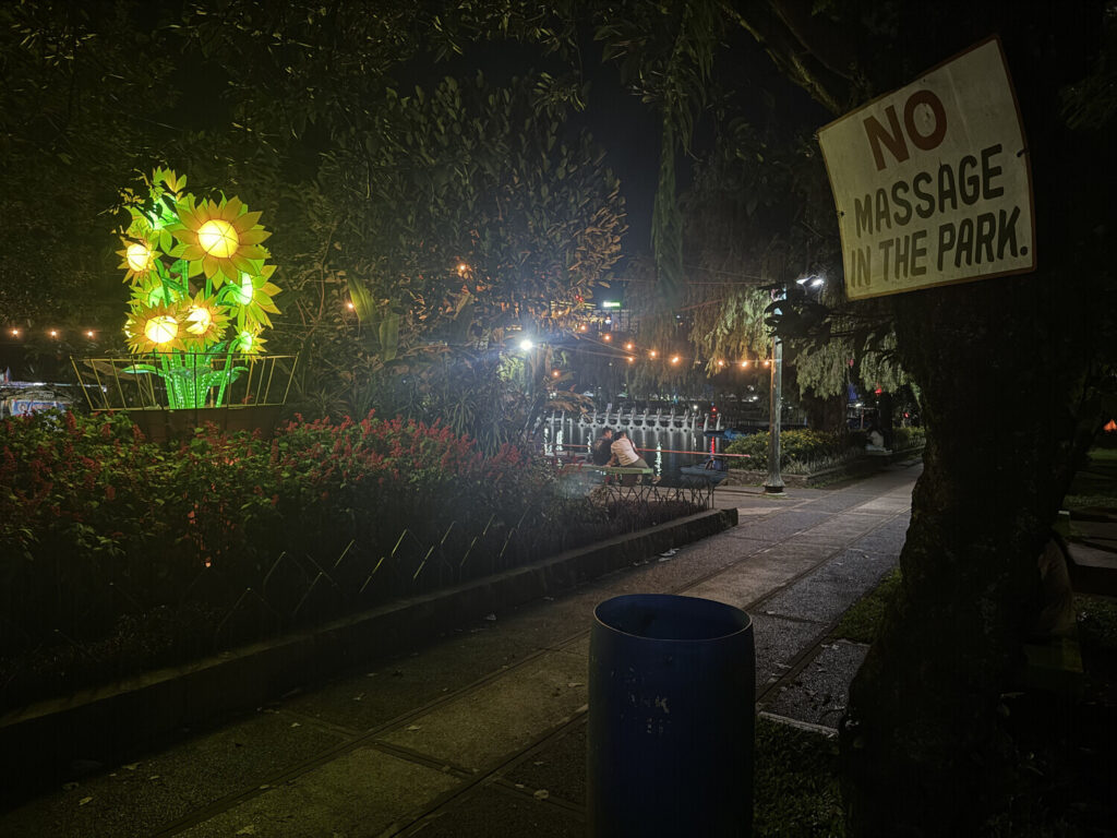 De ahí me fui al parque infantil, el cual estaba lleno de grupos de estudiantes de secundaria. Me senté un rato en uno de los bancos. Noté que varios de los estudiantes hablaban entre ellos en inglés. Ninguno me abordó ni me saludó, lo cual confirma mi teoría de que la gente de Baguió es más reservada que la de otras ciudades filipinas.