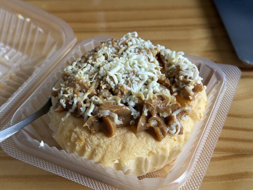 En el mercado me compré dos panes rellenos, uno de yema y otro de ube, más que nada para probar la pasta de yema y de ube de Baguió.