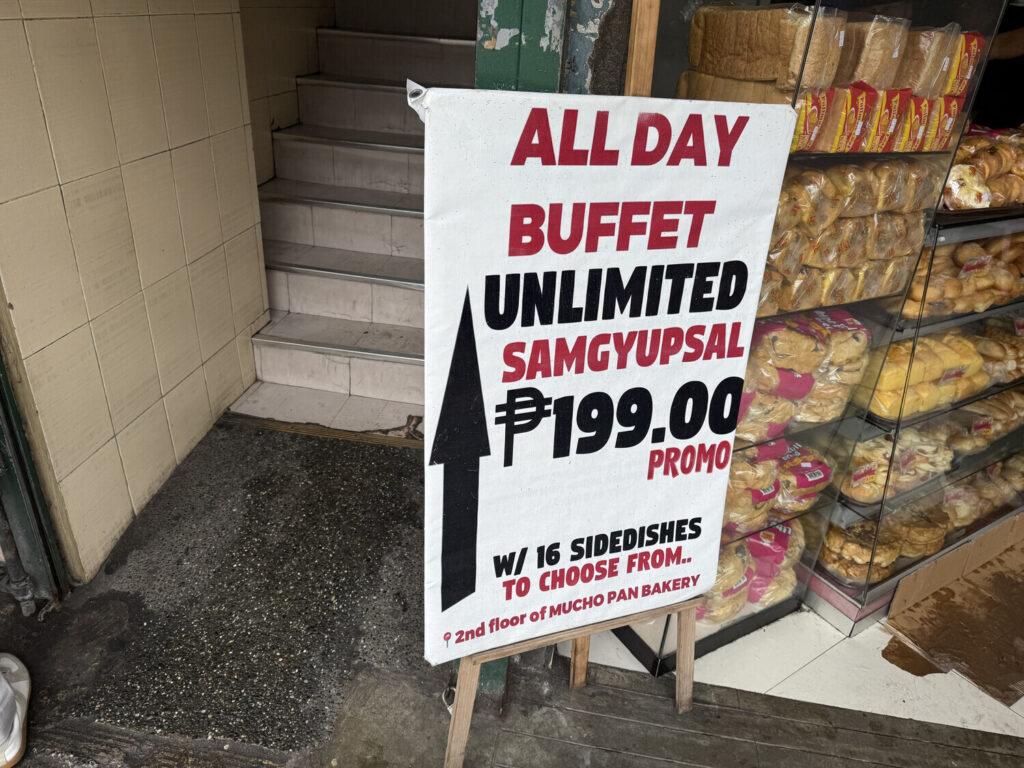 Cerca de las 15:00 pasé por un restorán que ofrecia buffet ilimitado de samgyeopsal (barbacoa coreana) por tan solo ₱200 (3€).