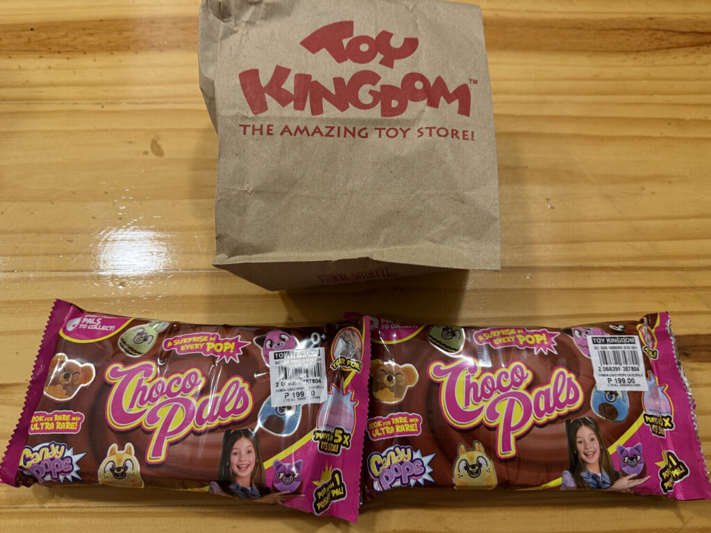 Dado que mis amigas tenían 3-4 años, el juguete no podía contener piezas pequeñas. Además no debía ser muy caro ni muy grande. Después de mucho vacilar y alternar entre Toy Kingdom y Miniso, al final acabé comprándoles algo llamado Choco Pals (₱200 c/u; 3€). Era un paquete rectangular, plano y de plástico que al abrirlo salía un peluche pequeño que aparentemente tiene gusto (¿olor?) a chocolate.