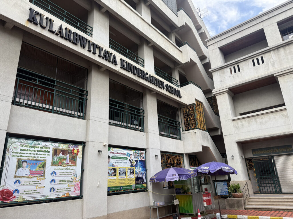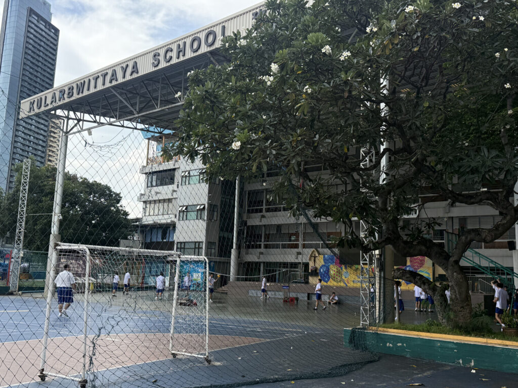 Frente a la iglesia había un colegio católico llamado Kularb Wittaya. Era grande y con varios edificios; por lo que entiendo atiende a todos los niveles educativos, desde jardín hasta secundaria.