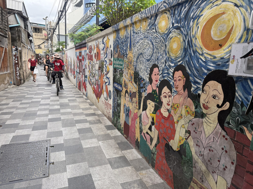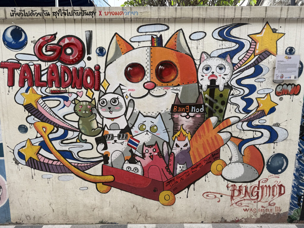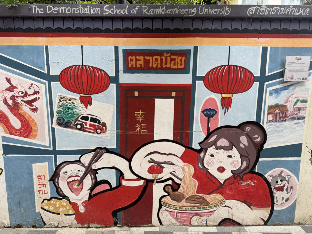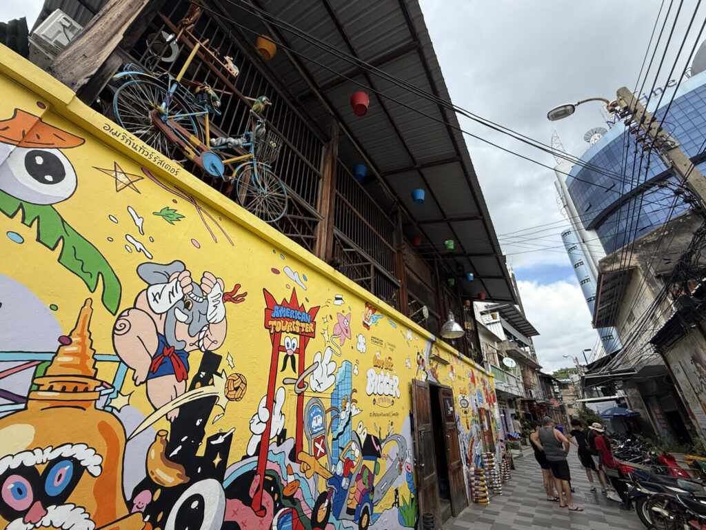 Me pareció genial descubrir que muchos de los murales en este callejón habían sido realizados por estudiantes de distintas escuelas de Bangkok.