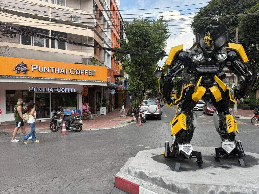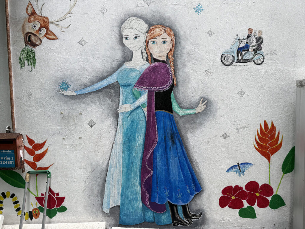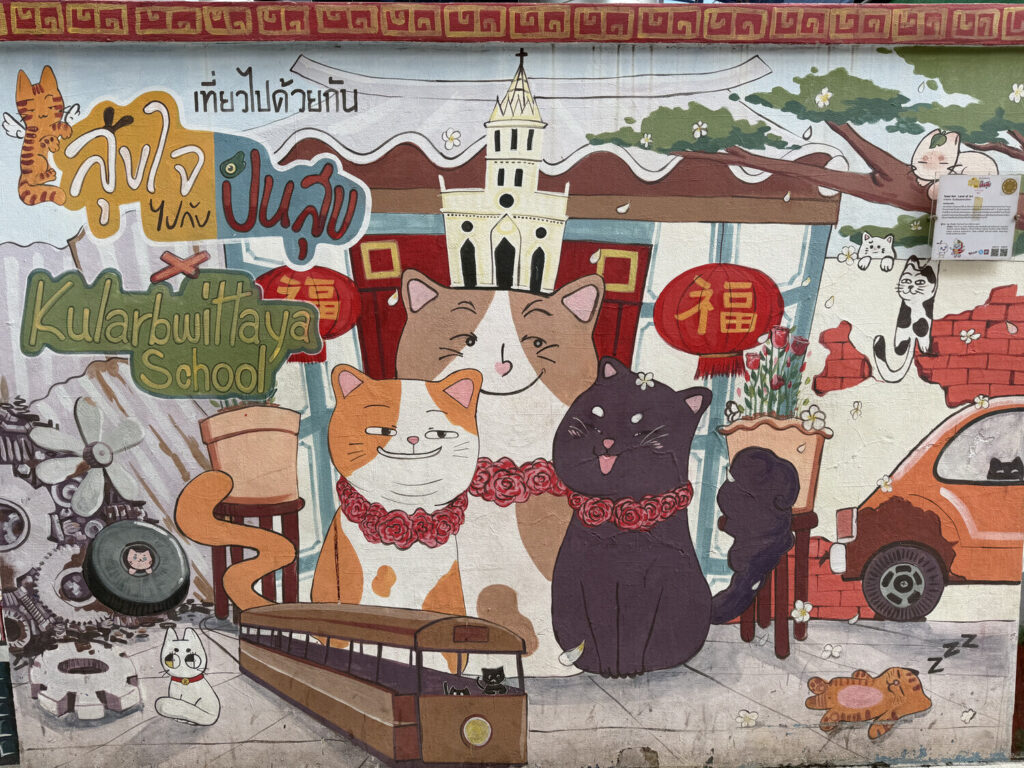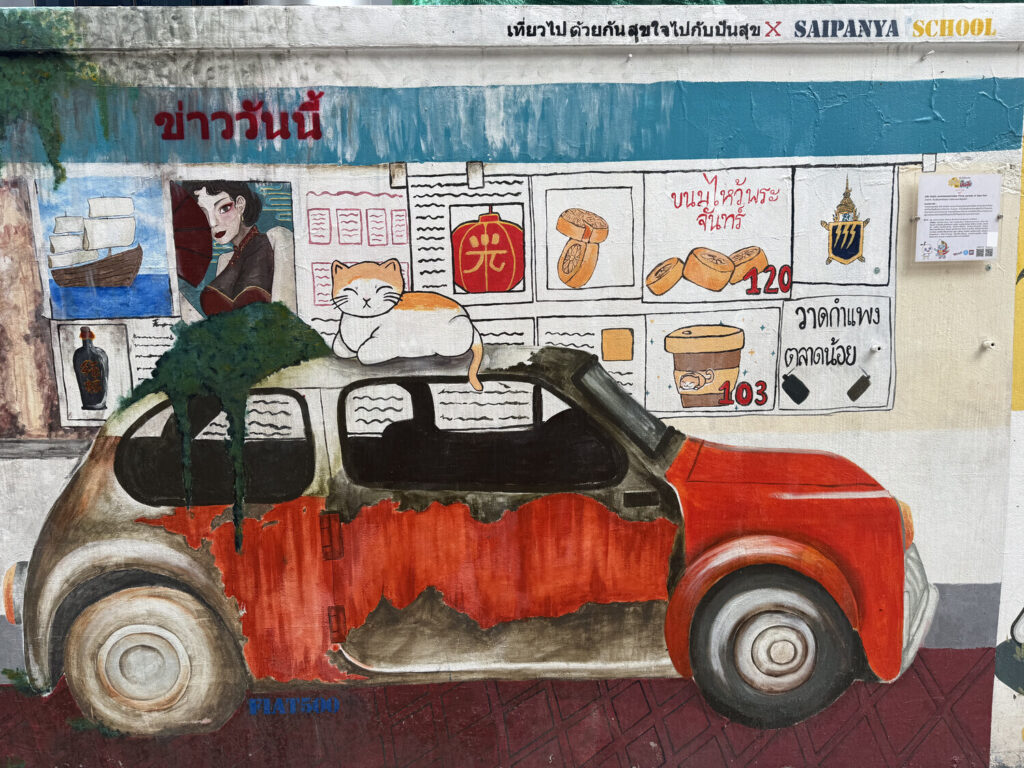 Me pareció genial descubrir que muchos de los murales en este callejón habían sido realizados por estudiantes de distintas escuelas de Bangkok.