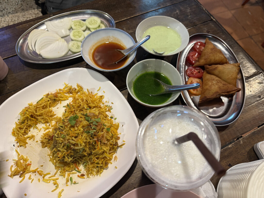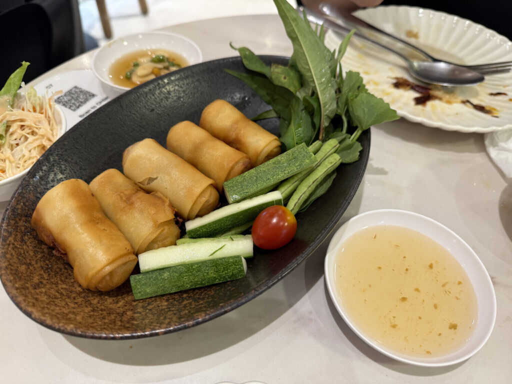 A las 17:00 me junté con Shali en Everyday, un restorán dentro de River City. Shali pidió un par de cosas para compartir conmigo, incluyendo unos rollitos de primavera.