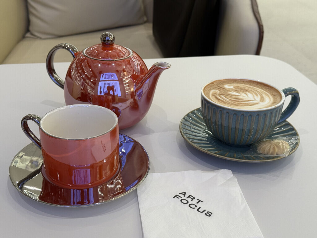 A las 19:00 nos pasamos a Art Focus, donde Shali pidió un té para ella y un macchiato para mí.