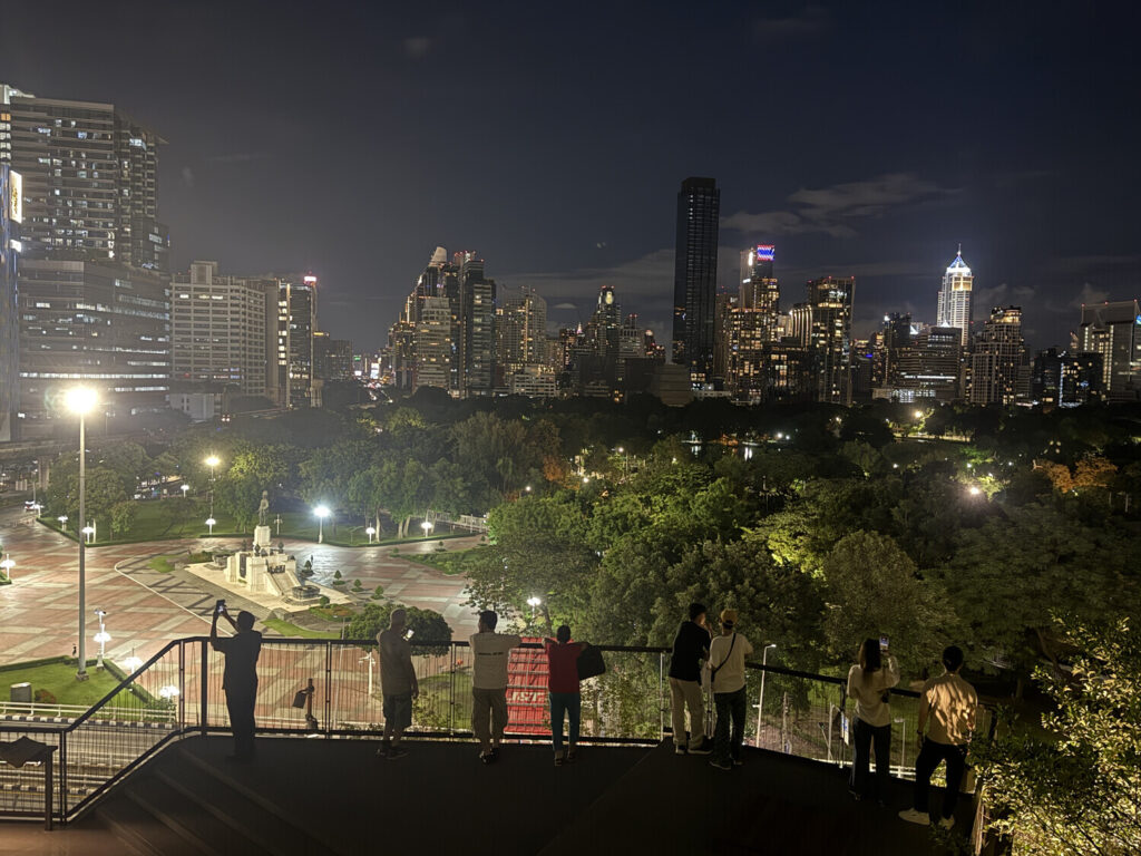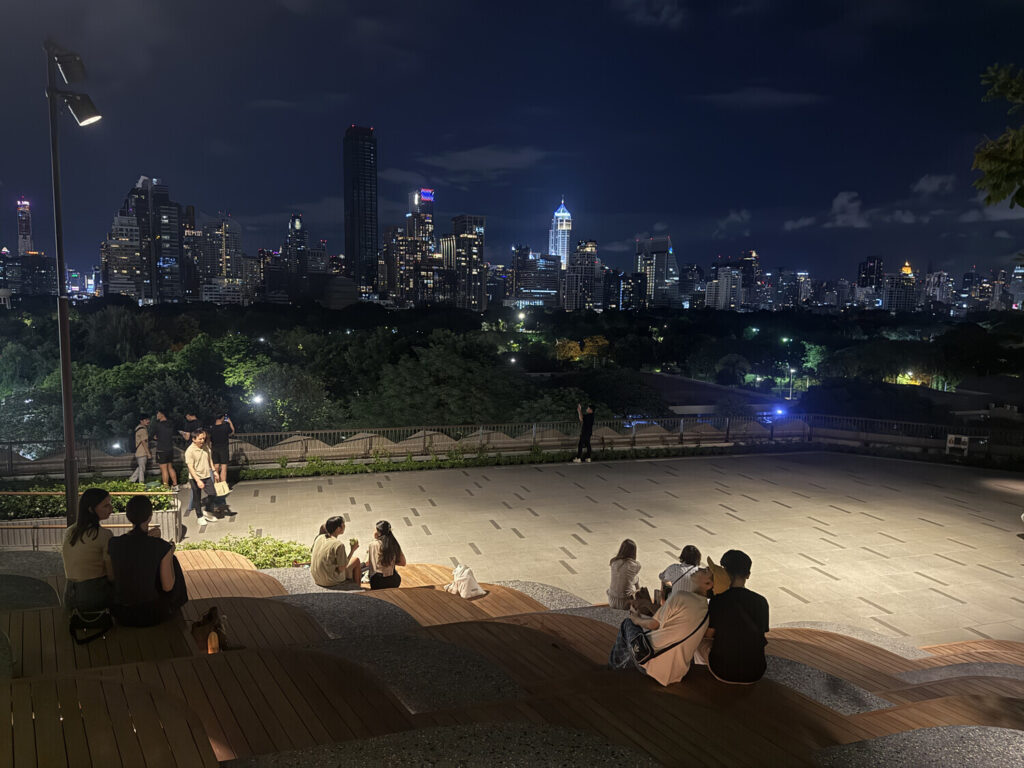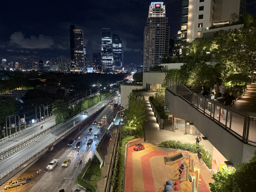 Este «rooftop park» (parque en la azotea) me hizo acordar a los centros comerciales en Japón, que suelen tener jardines en la azotea. En Bangkok no es tan común pero este estaba bastante bien, con juegos infantiles, abundante vegetación y espléndidas vistas a la ciudad.