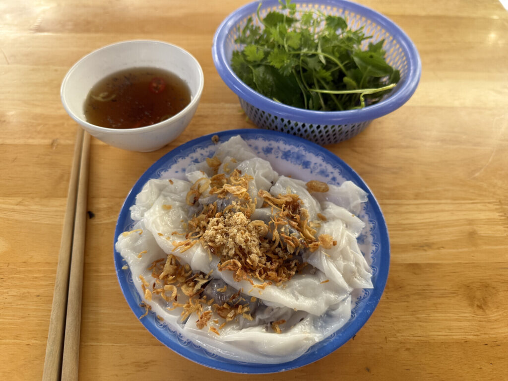 Al rato pasé por un restorán que vendía bánh cuốn, una de mis comidas vietnamitas favoritas, la cual no comía desde hacía casi un año. Me pedí un plato por ₫35k (~1€).