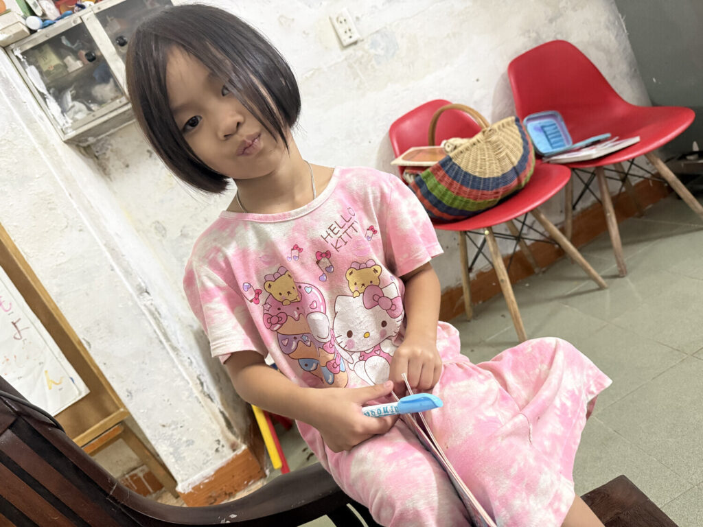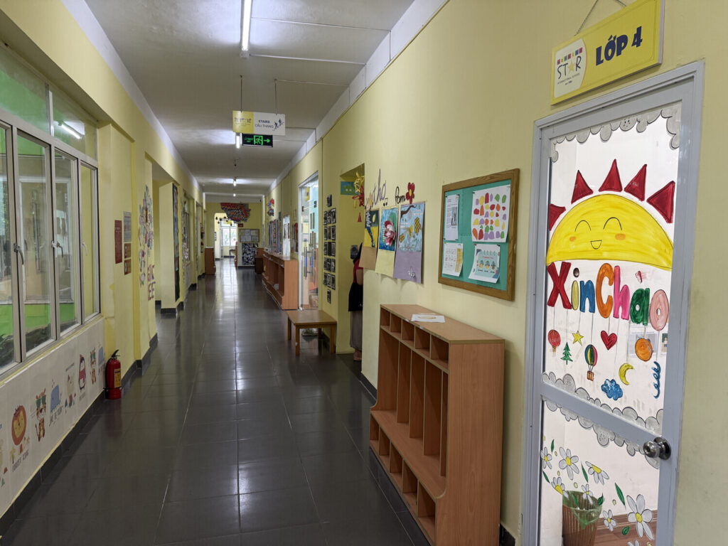A las 16:15 llegamos a la escuela de Diễm para pasarla a buscar. Se trataba de una escuela primaria internacional. Lo curioso para mí fue que las aulas eran pequeñas y algunos cursos tenían menos de diez alumnos (el de Diễm en particular era uno de los más chicos, con apenas cuatro estudiantes).