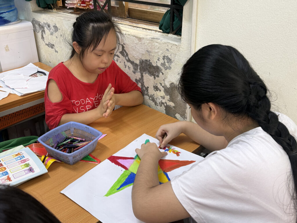 A las 14:00 fuimos en la moto a Trung tâm Hy Vọng (Hope Center), una organización para el cuidado de jóvenes con discapacidades intelectuales. Ya habíamos visitado juntos este lugar anteriormente.
