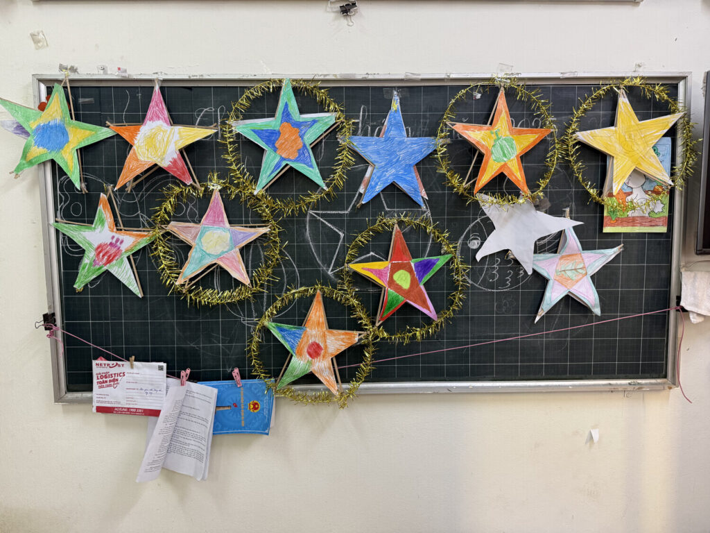 Linh había preparado una actividad que consistía en pintar y decorar una linterna estrella.