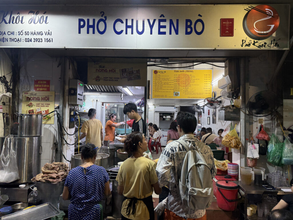 A las 18:00 fuimos a cenar a un local de phở llamado Phở Khôi Hói. Yo invité a todos (₫145k; ~4,7€).