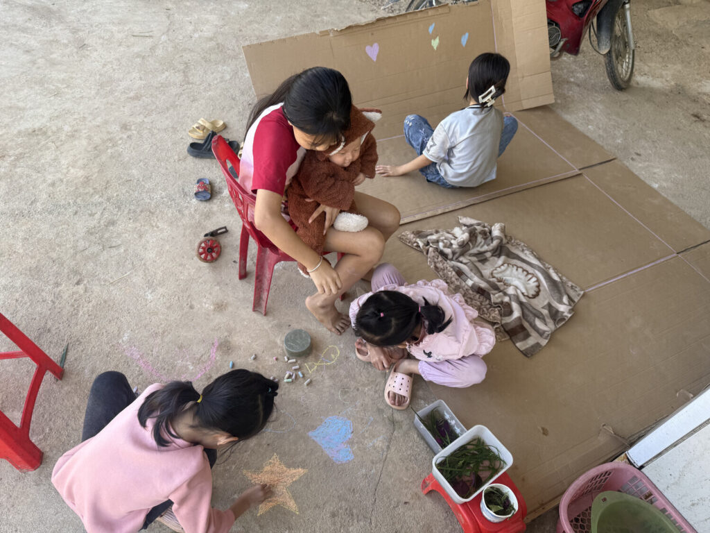 No pude hacer ninguna foto dado que era difícil desde la moto yendo a velocidad, pero durante el trayecto llegué a ver a varios niños andando solos por la carretera, cargando con canastos en la espalda, o bien jugando al costado de la carretera en montículos de piedra o de tierra.