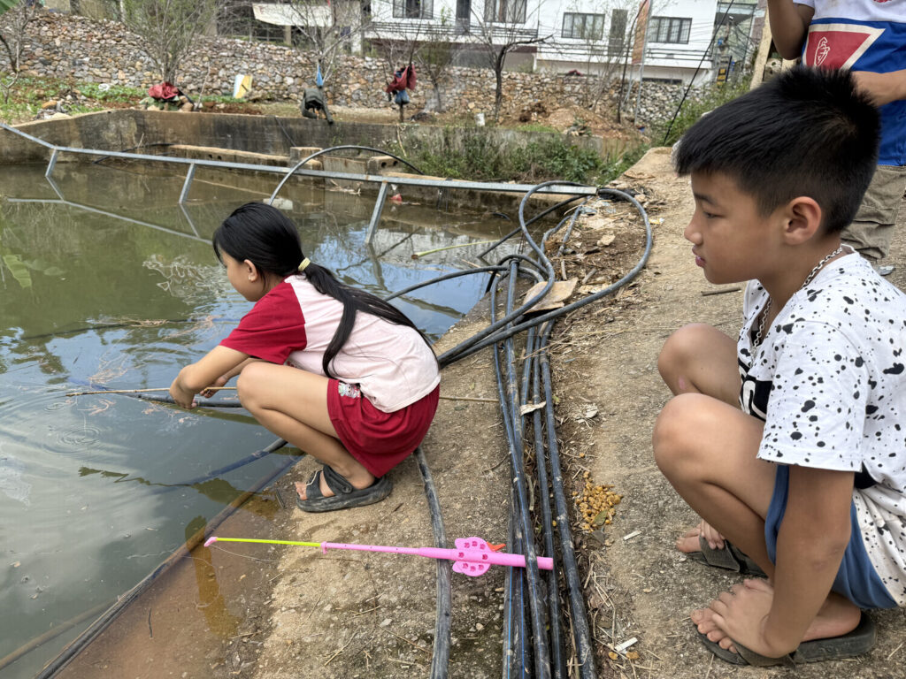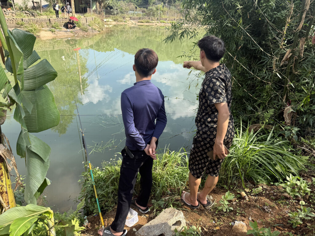 Apenas terminaron de comer, varios de los estudiantes salieron a la laguna a pescar. Al parecer esa es la actividad de fin de semana que se realiza aquí para divertirse y pasar el tiempo.