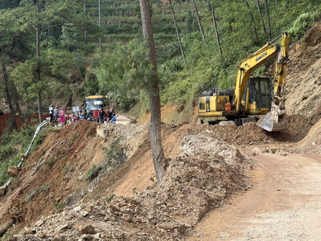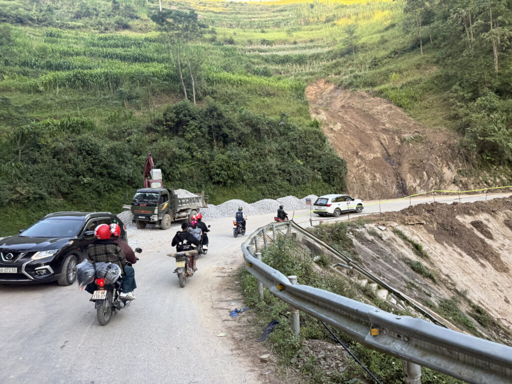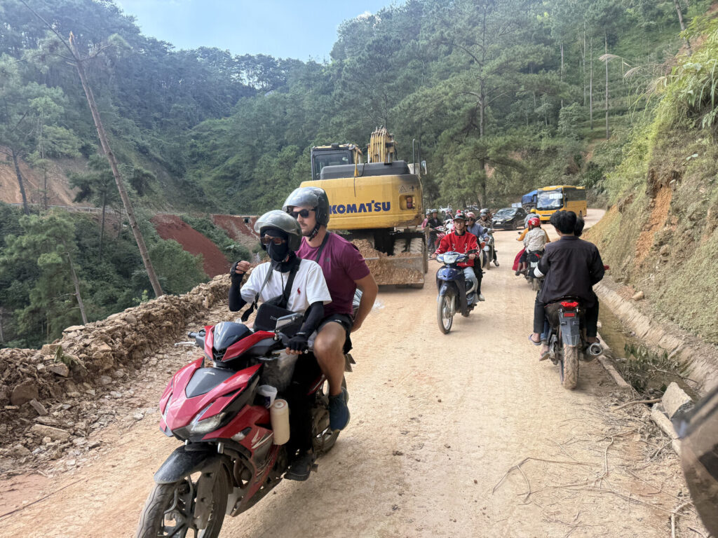 No habían pasados más de 10 minutos desde que arrancamos el trayecto en moto, que nos topamos con un bloqueo. Resulta que había habido un deslizamiento de tierra sobre la carretera, así que había que esperar a que la grúa levantara la tierra para poder pasar.