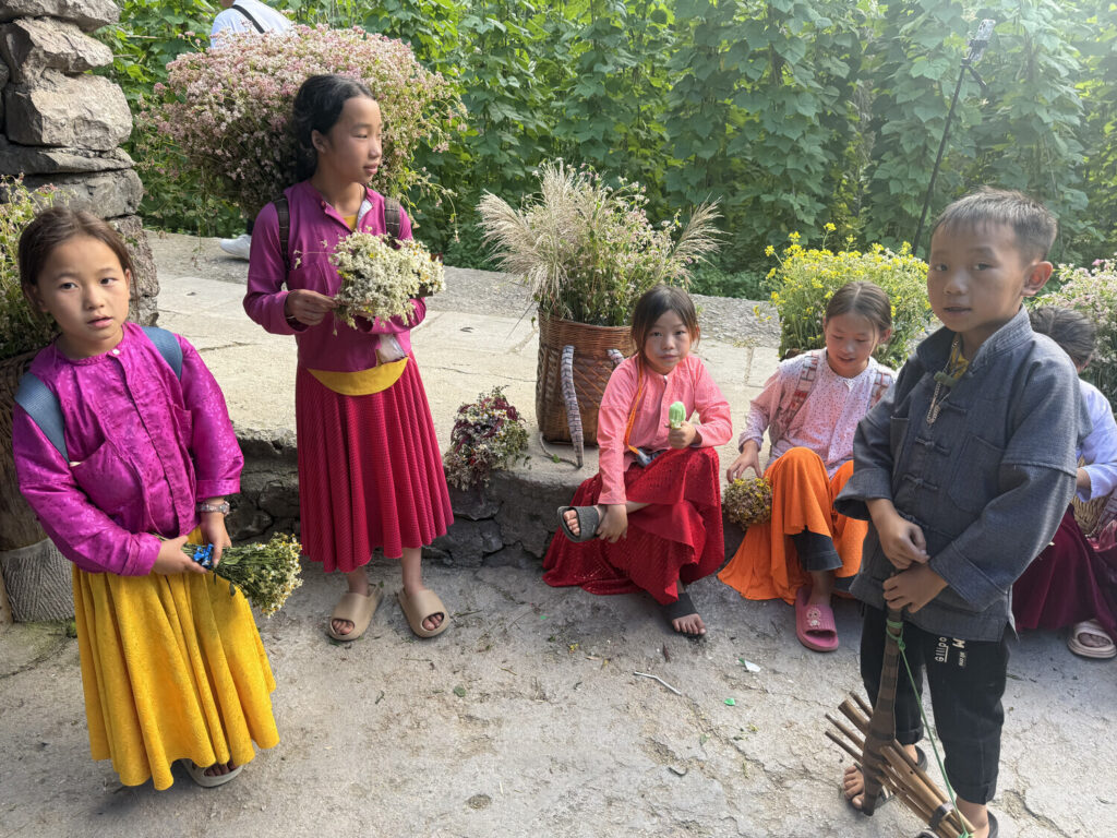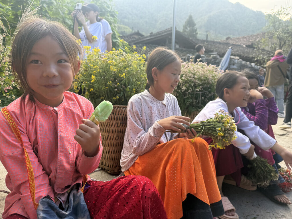 Yo al principio pensé que vendían las flores a los turistas, o que te cobraban para hacerte fotos con ellos y las flores. Pero no: solo estaban para darle más color y belleza a la aldea turística. Por supuesto que si les dabas dinero te lo aceptaban, pero lo interesante es que no te lo pedían. Les podías pedir hacerte una fotos con ellos e iban a aceptar alegremente, más allá de si les dabas o no dinero.