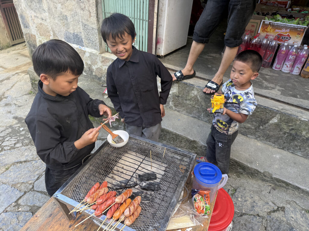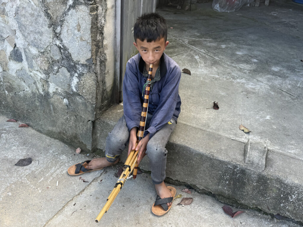 De hecho, esta aldea estaba repleta de niños andando de aquí para allá cargando flores y tocando el khèn (instrumento tradicional que puedes ver que el niño tenía en la última foto).