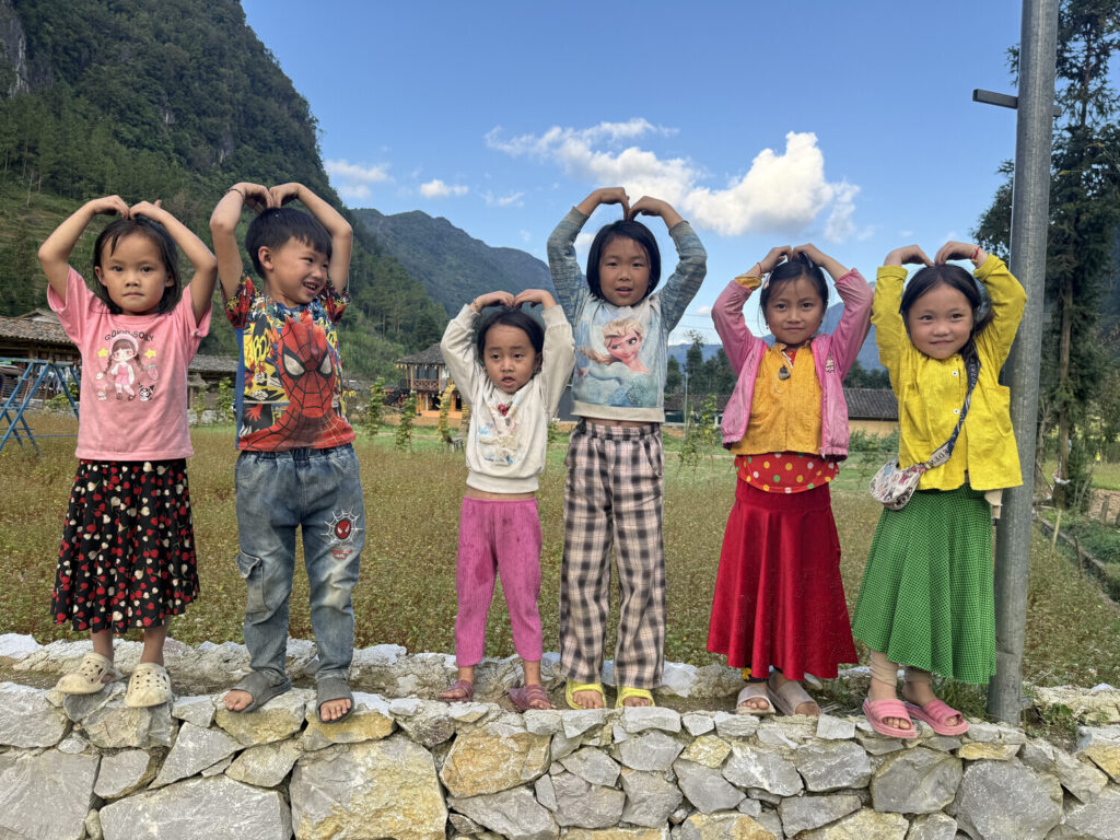 Niños haciéndome una pose de corazón (también por iniciativa mía).
