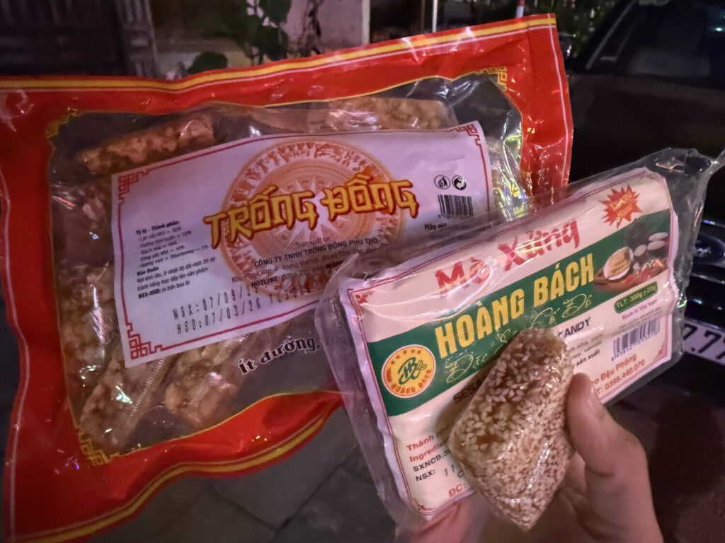 El dulce de sésamo [kẹo mè xửng] es una especialidad originaria de la ciudad de Hue, Vietnam. Se elabora con almidón de tapioca, malta mezclada con cacahuetes, recubierto de sésamo, cortado en pequeños trozos cuadrados (en bolsitas de celofán) y envuelto en cajas.