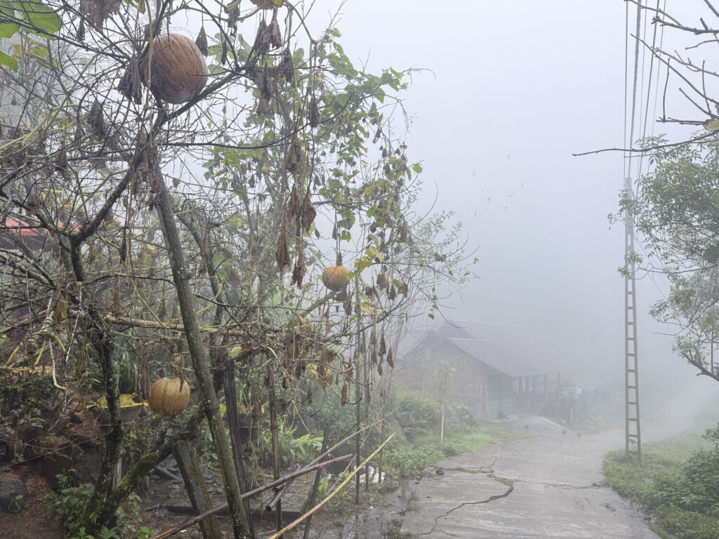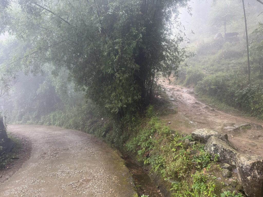Así que me fui solo a dar la vuelta. Pero solo caminé durante unos 5-10 minutos cuando me di cuenta de algo: podría tomar una carretera interna —es decir, no la ruta principal por donde van la mayoría de los vehículos que salen del pueblo— la cual pasaba por toda una zona rural / de aldeas y me conducía directo a Sapa.