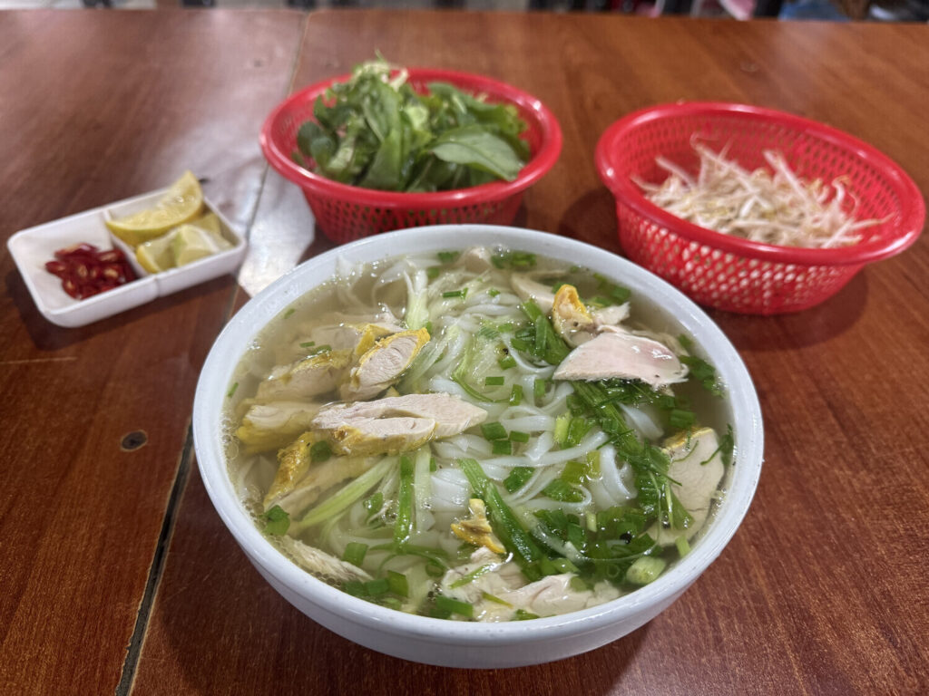 A las 11:30 llegué a un restorán de phở llamado Phở Bát Đá Sapa. Era el mismo restorán cerca de la iglesia a donde había ido el año pasado con Idalia y Renzo. Me pedí un phở gà (phở de pollo) que me costó ₫40k (~1,3€).