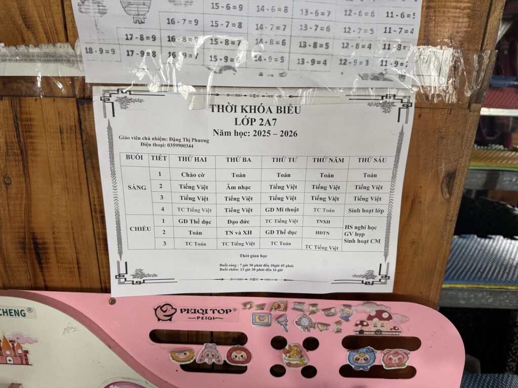 | T3 | Práctica de matemáticas | Práctica de vietnamita | Práctica de matemáticas | Práctica de vietnamita | — |