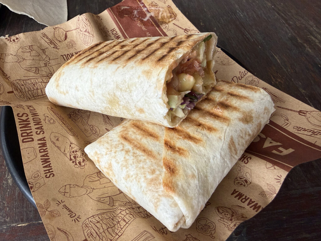Taco que me pedí (el menú lo llamaba taco pero era más bien un roll/wrap/shawarma).