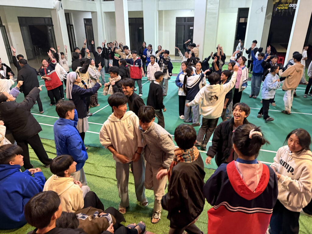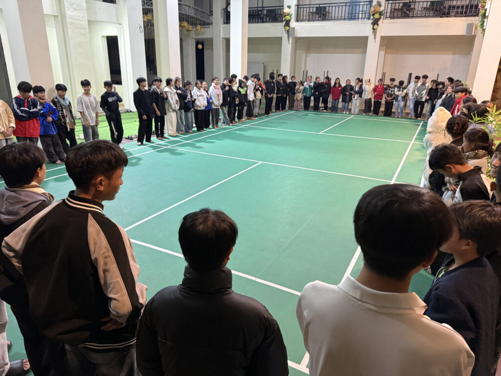A las 20:00 nos pasamos del aula al campo de pickleball. Yo le había pedido a la hermana que nos moviéramos allí ya que quería hacer algunos juegos que había preparado para que los chicos jugaran.
