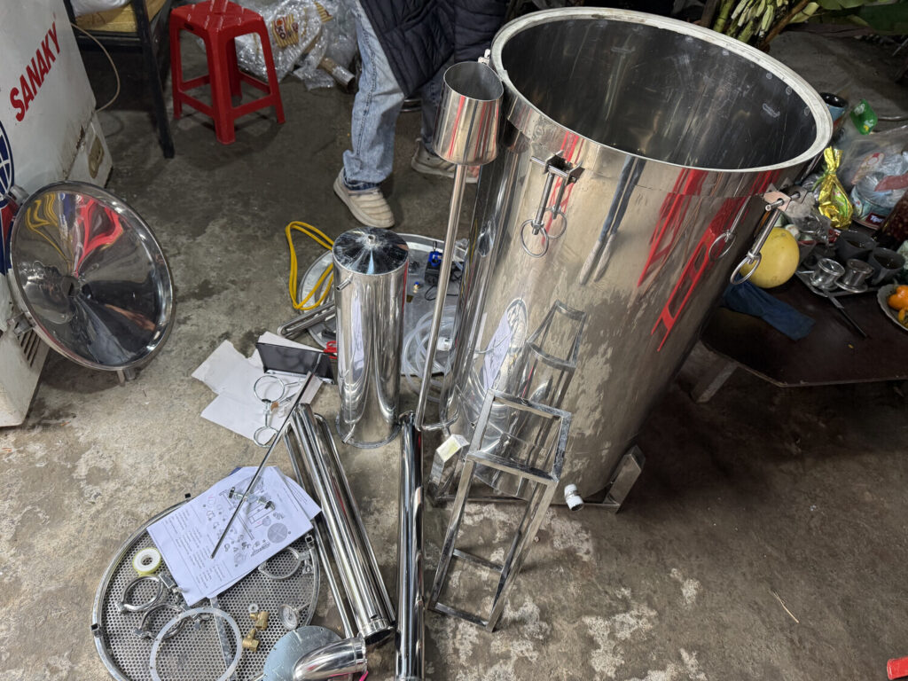 Dispositivo para extraer aceite del jengibre (aún no armado).