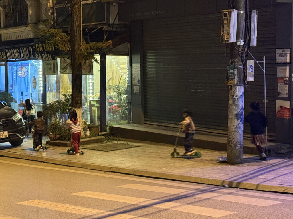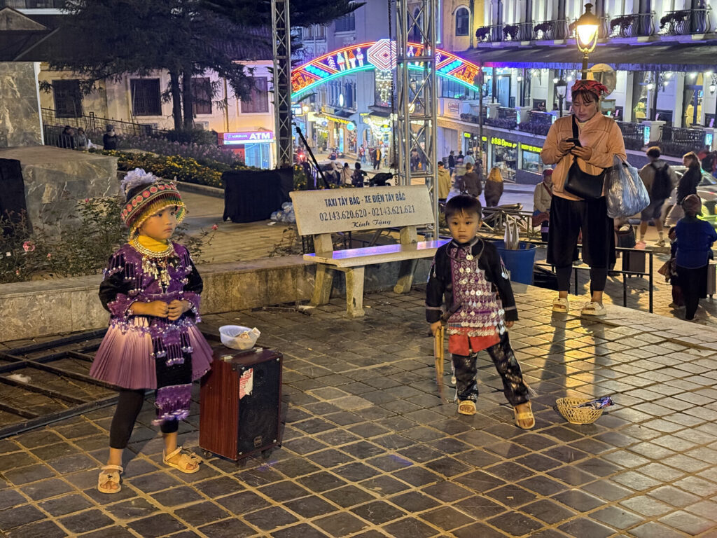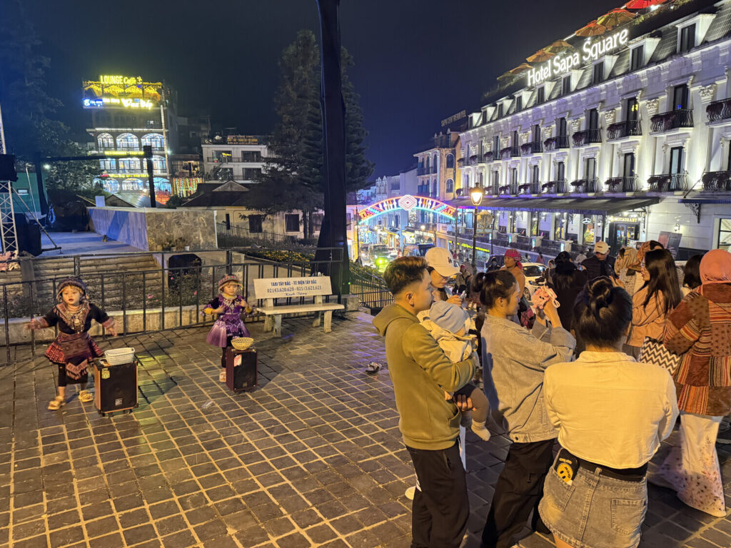 No hay mejor testimonio de lo seguras que son las calles de Sapa —y en general de todo Vietnam— que ver a un grupo de niños pequeños jugando en la acera a las nueve de la noche sin supervisión de adultos: