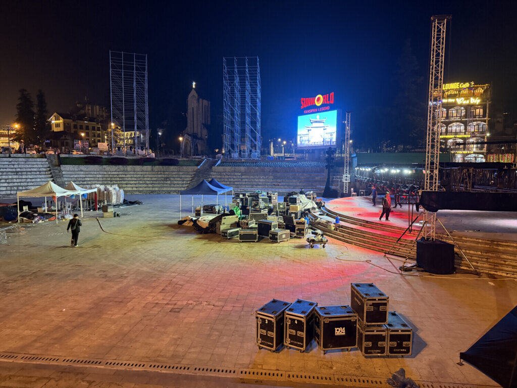 En esta plaza frente a la iglesia estaban preparando un escenario. Se ve que va a haber un evento importante el mes que viene.
