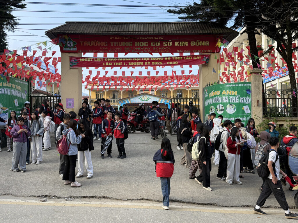 También me crucé con un grupo de niños de 11-12 años sentados en un banco frente al lago, charlando amenamente. Los niños/adolescentes de ciudad normalmente se juntan en centros comerciales o en locales de comida rápida y barata como McDonald’s. En el pueblo de Sapa no hay ni centros comerciales ni McDonald’s, con lo cual los niños se juntan con sus amigos en la calle al lado del lago.