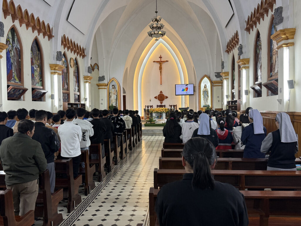 Algo curioso de la cena es que todos comían en platos con tenedor y cuchillo, es decir al estilo occidental, en lugar de en boles con palillos como es el estilo asiático. Me explicó una de las hermanas que esto era debido a que la iglesia había sido fundada por franceses.