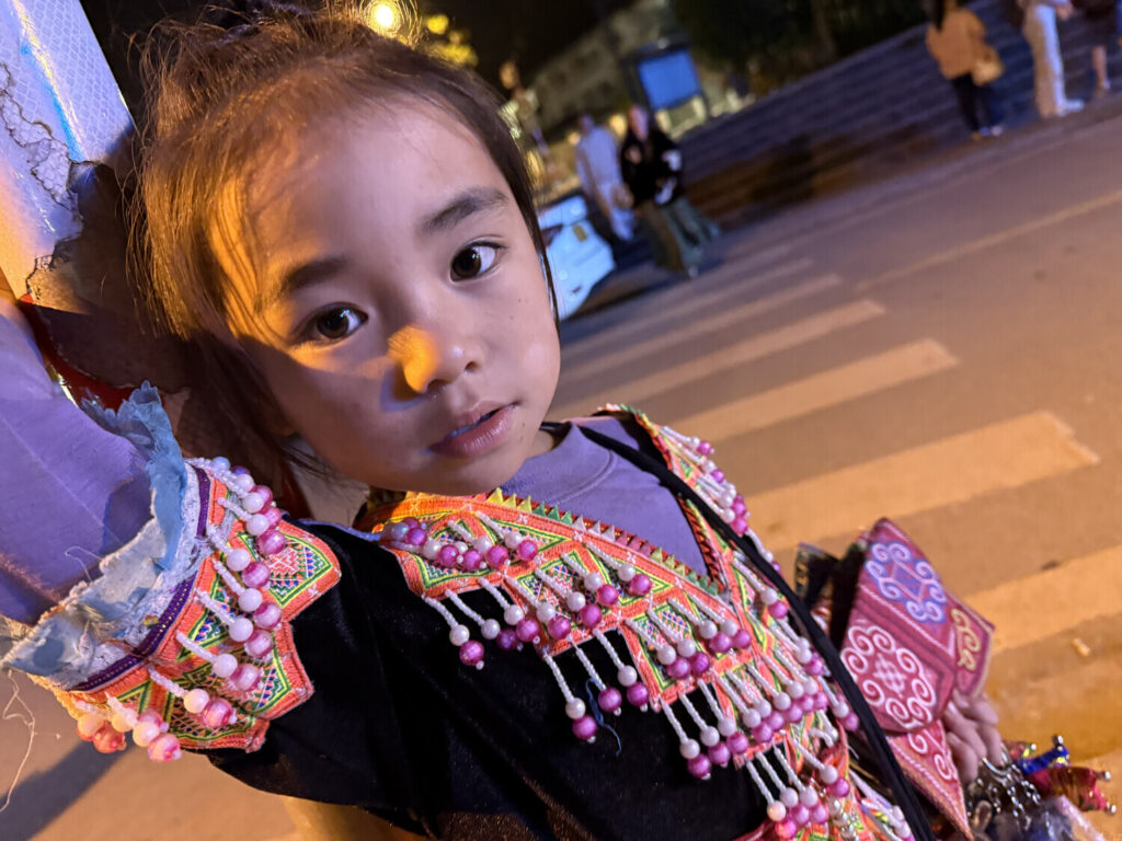 Me crucé con varios niños de la calle más. «Niños de la calle» suena a niños sin hogar que viven en la calle, pero en este caso todos tienen casa (no me gusta el término pero no sé de qué otra forma llamarlos). A mi entender son todos hmong. Vienen al pueblo para hacer algo de dinero por parte de los turistas, y luego se vuelven a sus hogares en las aldeas.