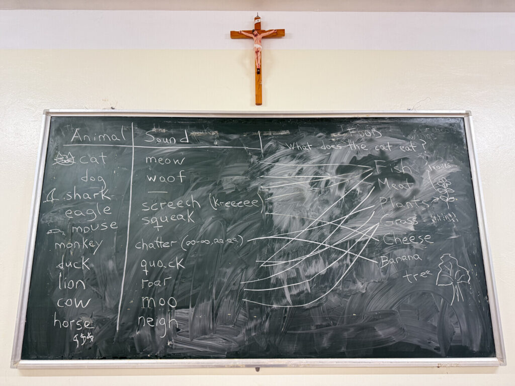 Había preparado una clase sobre animales. Les enseñé varios nombres de animales y los sonidos que hace cada uno. También les enseñé la comida que comen (e.g. pescado, carne, vegetales), el tipo de animal qué son (e.g. de agua, de granja, mascotas) y algunas acciones (e.g. nadar, volar, trepar).