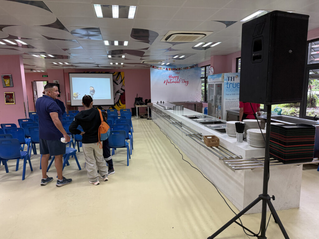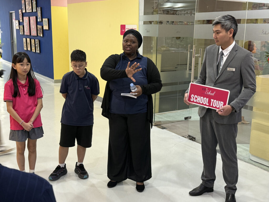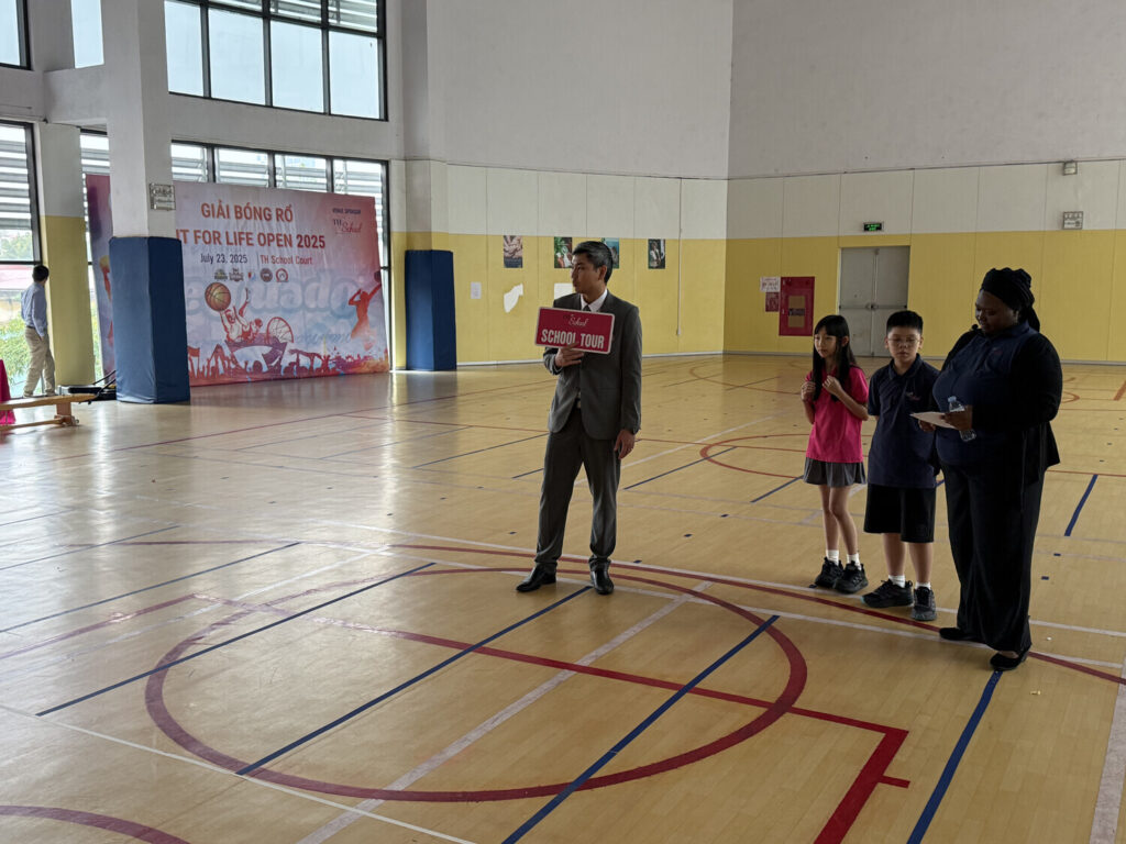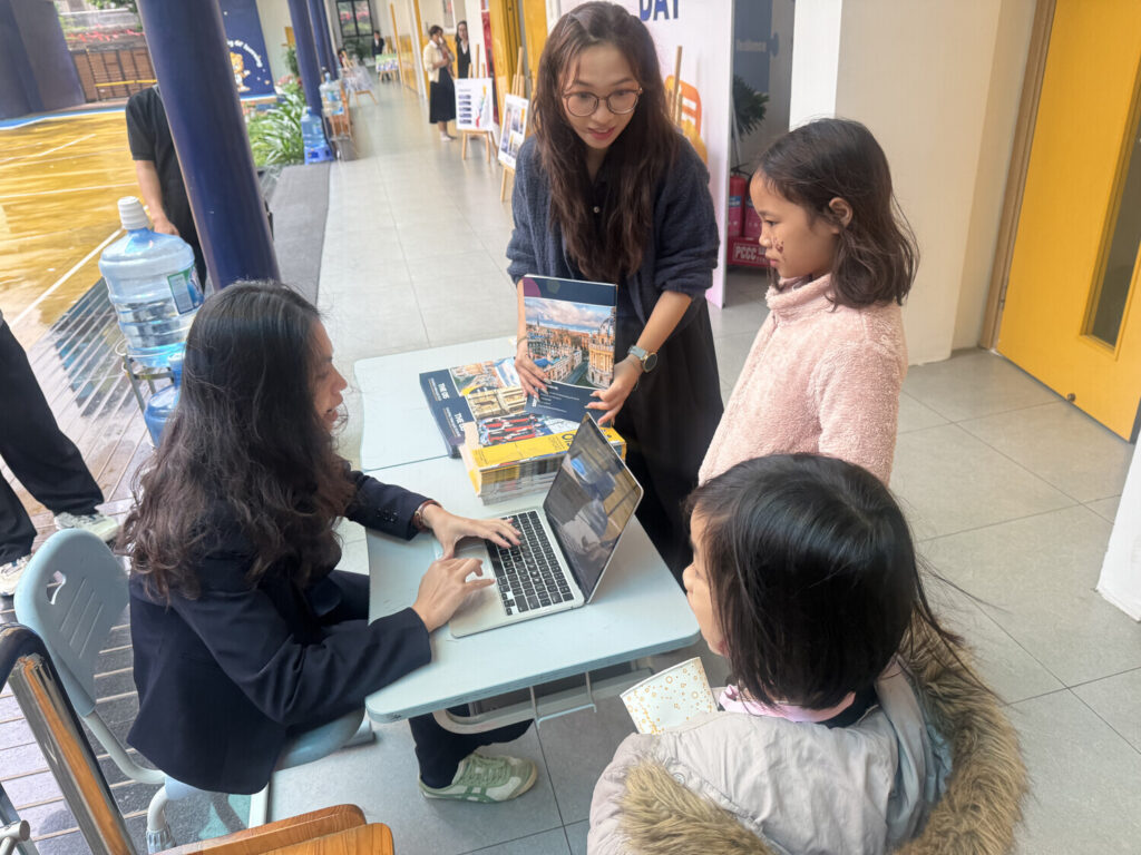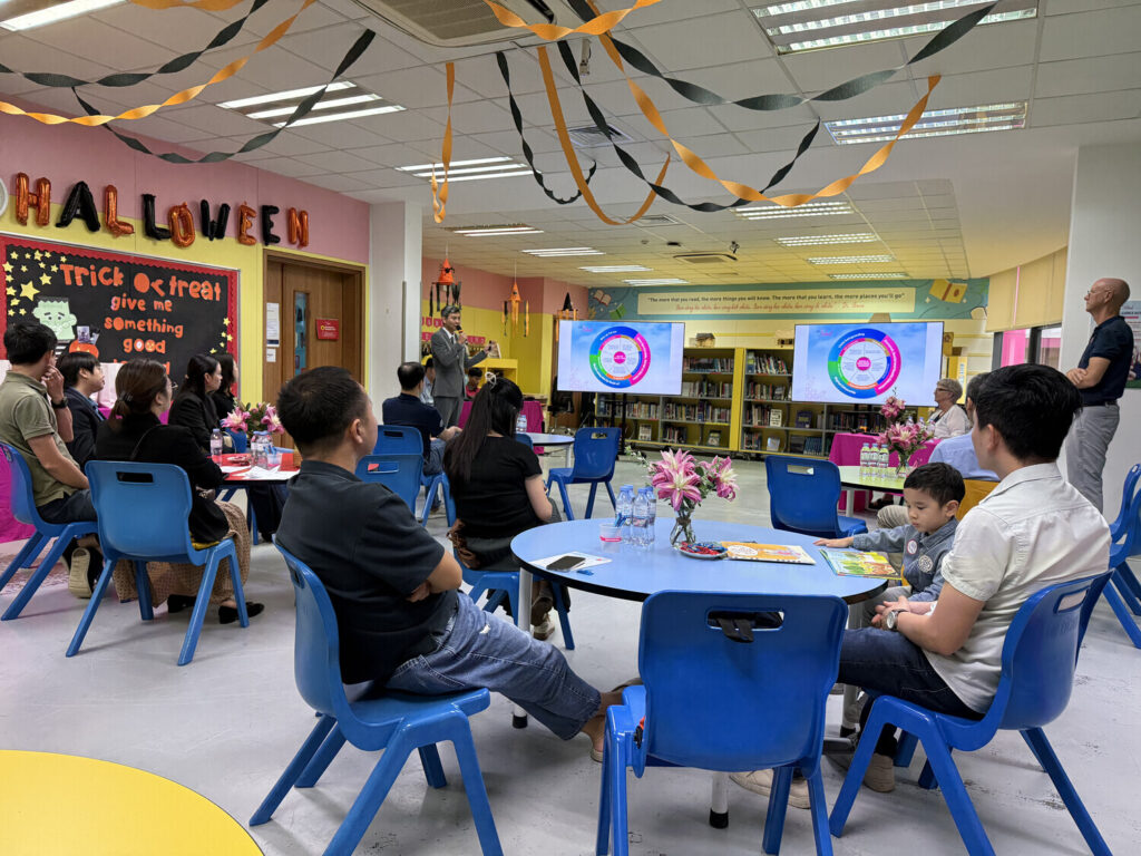 Resulta que hoy era un Open Day destinado a padres que estaban pensando enviar a sus hijos a este colegio. El evento incluía una presentación impartida por miembros del personal, incluyendo docentes extranjeros y la directora de la sección infantil. Dos alumnos de primaria también participaron y dieron un breve discurso. Luego de la presentación hubo una visita guiada por varias partes de la escuela y finalmente volvimos a la sala original para una sesión de preguntas y respuestas acompañada de comida y refrescos.