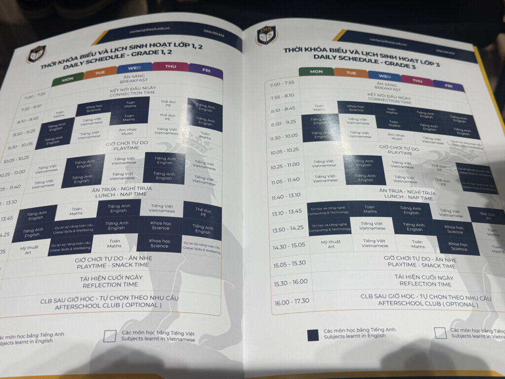 Este colegio era bastante más barato que TH School: alrededor de 170 millones de dongs (~5600€) por año (el folleto no aclaraba para qué nivel educativo, así que pienso que quizás las tasas fuesen las mismas para todos los niveles).