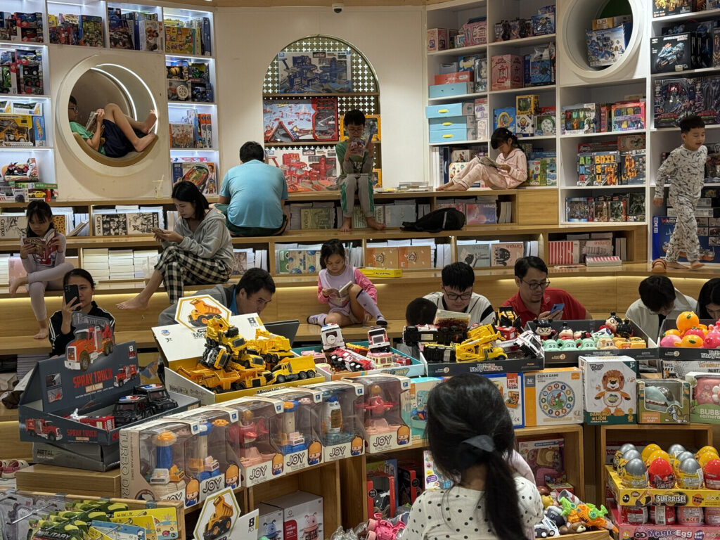 A las 12:00 salimos de TH School y fuimos al TH True Mart que quedaba al lado. La colega de Linh y sus hijas vinieron con nosotros.