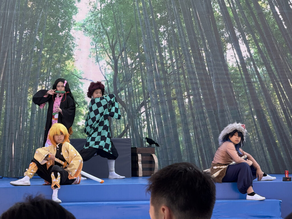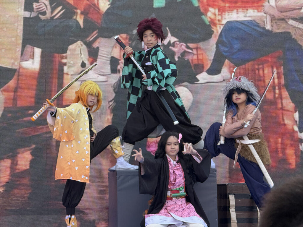 A las 14:35 un grupo de cuatro chicos japoneses se subieron al escenario a realizar un acto de Kimetsu no Yaiba.