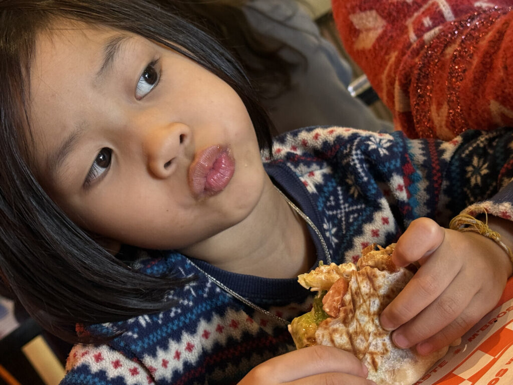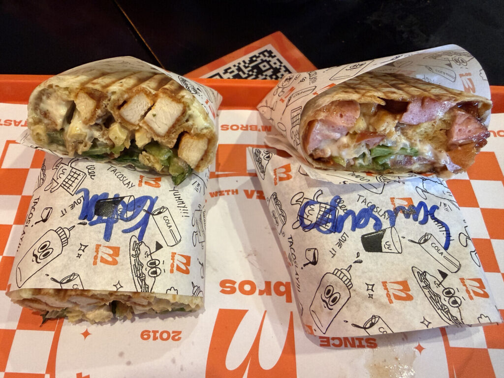 Pedimos dos tacos, uno para Linh y Suong con salchichas, mayonesa y salsa barbacoa, y el otro para mí con filete de pollo y salsas de ajo y perejil y de teriyaki. Estuvieron muy ricos los dos.