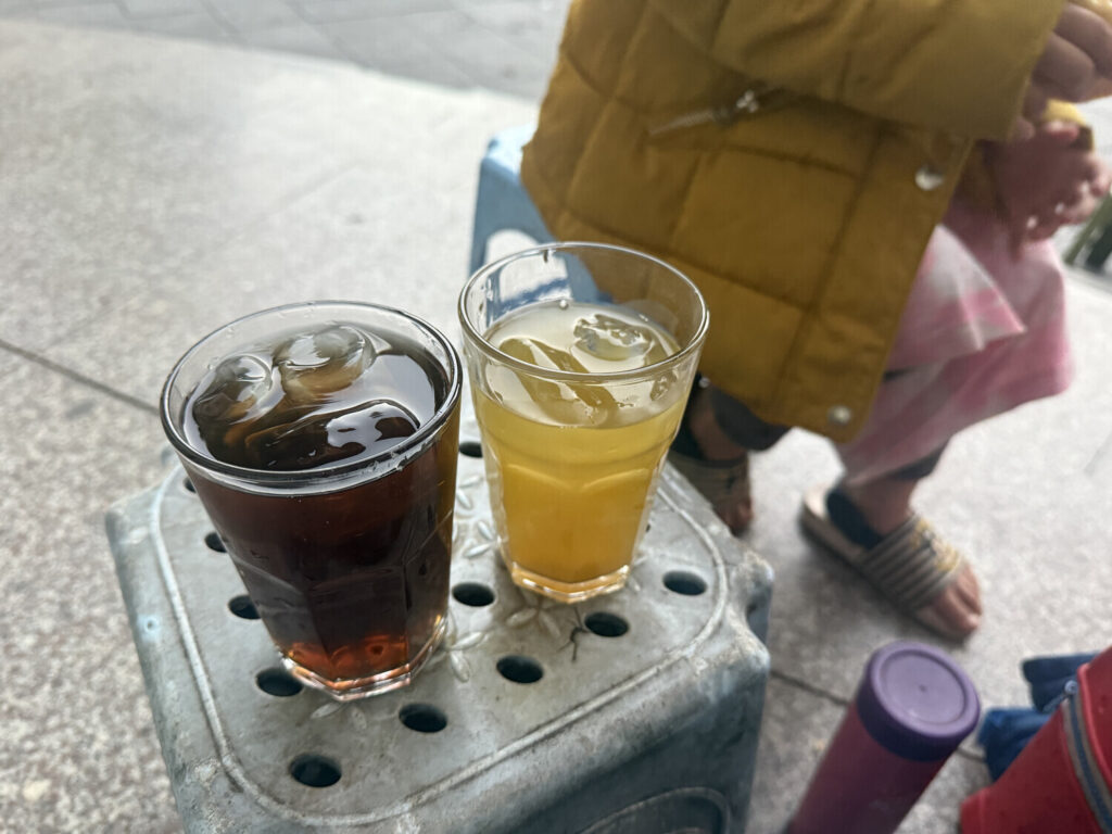 A las 16:00 llegamos a la casa de Linh. Enseguida volvimos a salir para ir a buscar a Diễm a la escuela y llevarla a su clase de violín en Hoàn Kiếm. Mientras esperábamos a que terminara su clase, Suong, Linh y yo nos sentamos a tomar un té en la calle.