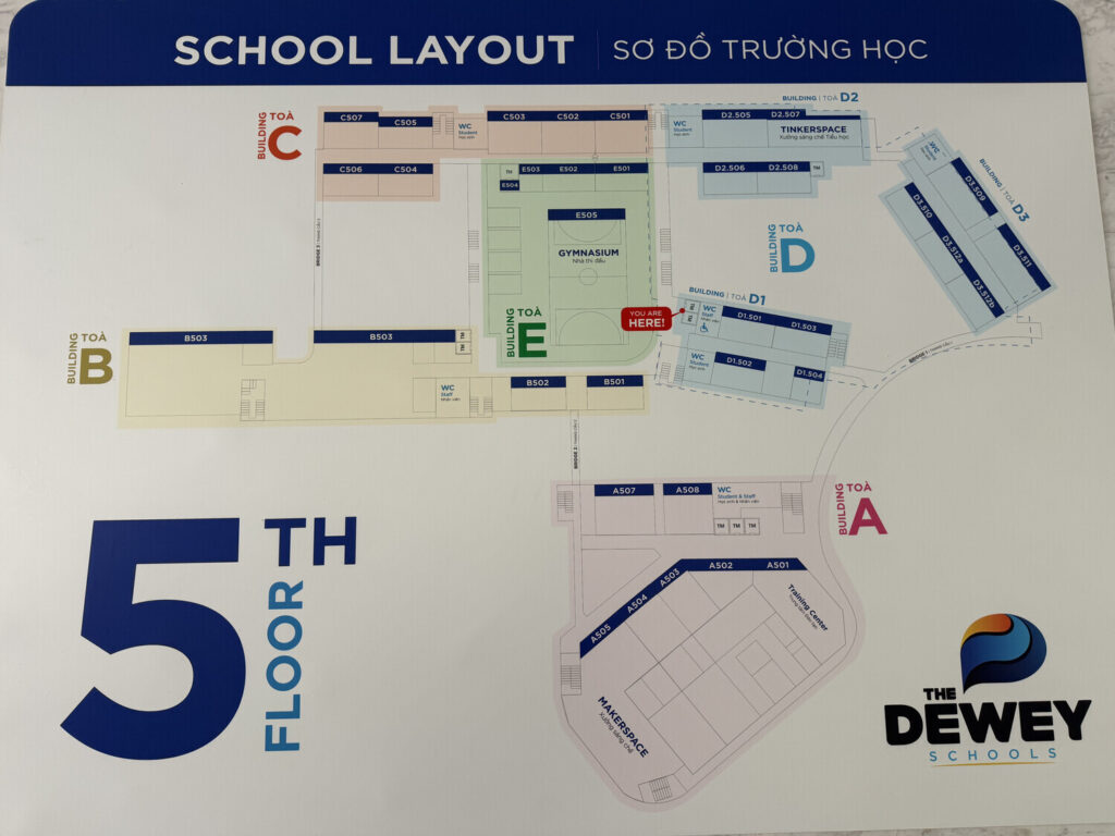 A las 9:00 fui en autobús hasta The Dewey Schools / Sakura Schools, donde me encontré con Linh y Suong para hacer un school tour.