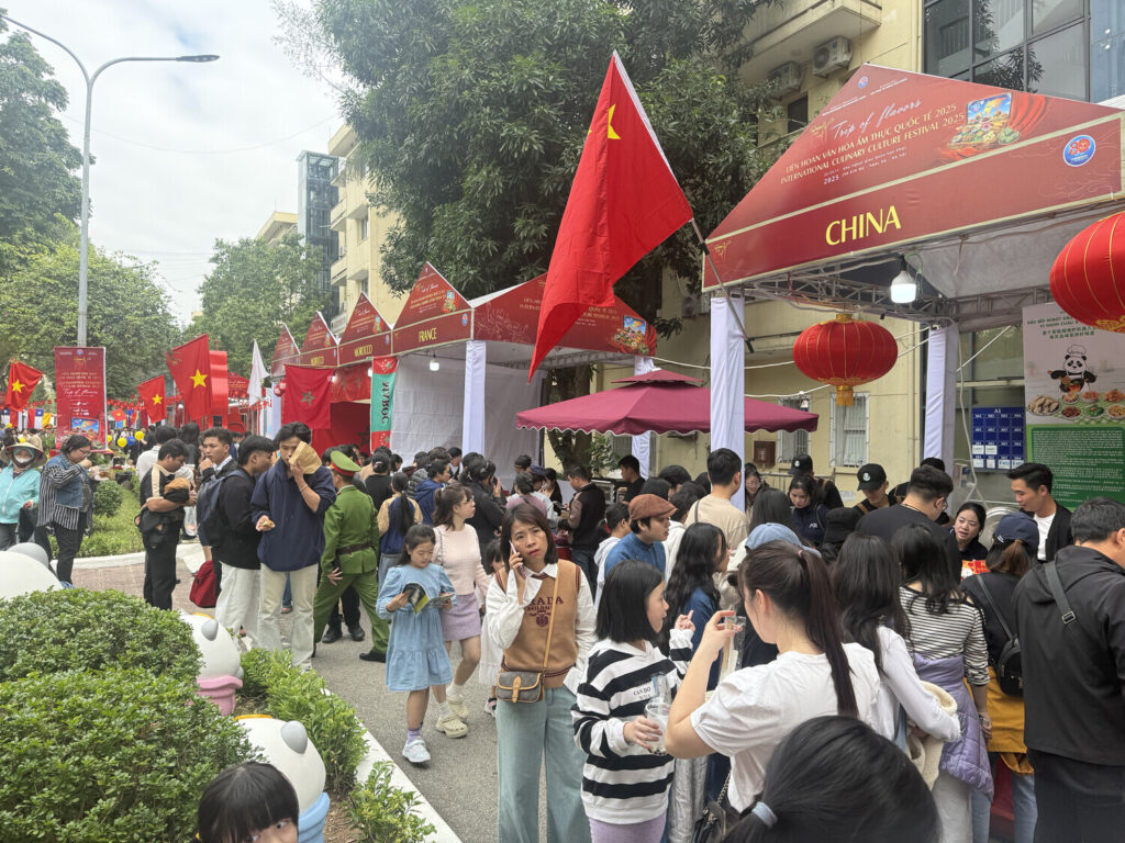 A las 13:00 fuimos a un festival llamado Festival Internacional de la Cultura Culinaria 2025 (Liên hoan Văn hóa Ẩm thực Quốc tế 2025). Con Linh bromeamos que hay demasiados eventos/festivales en Hanói, y es cierto: en las últimas semanas no hice otra cosa que visitar escuelas (school tours) e ir a festivales con ella.