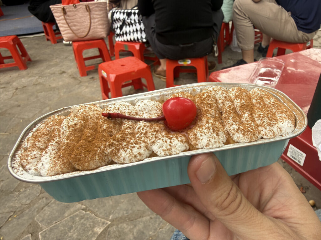 Me compré una sola cosa: un pastel de Tres leches en el puesto de Venezuela. Me costó ₫50k (~1,6€).