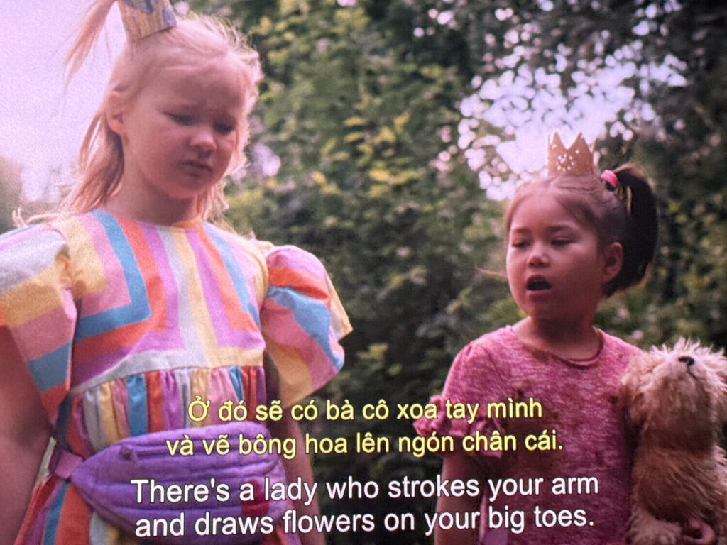 Donde me senté yo tenía a Linh y a sus hijas a mi izquierda, y a una joven vietnamita a mi derecha. Me la pasé hablando más con la joven vietnamita que con Linh e hijas. Al principio pensé que era universitaria, ya que era bastante alta (1,70 m), pero me dijo que aún estaba en la escuela. Me contó que había planificado venir con su amiga a ver la peli, pero al final ella no pudo así que estaba sola. Me alegró haberle podido hacer algo de compañía.