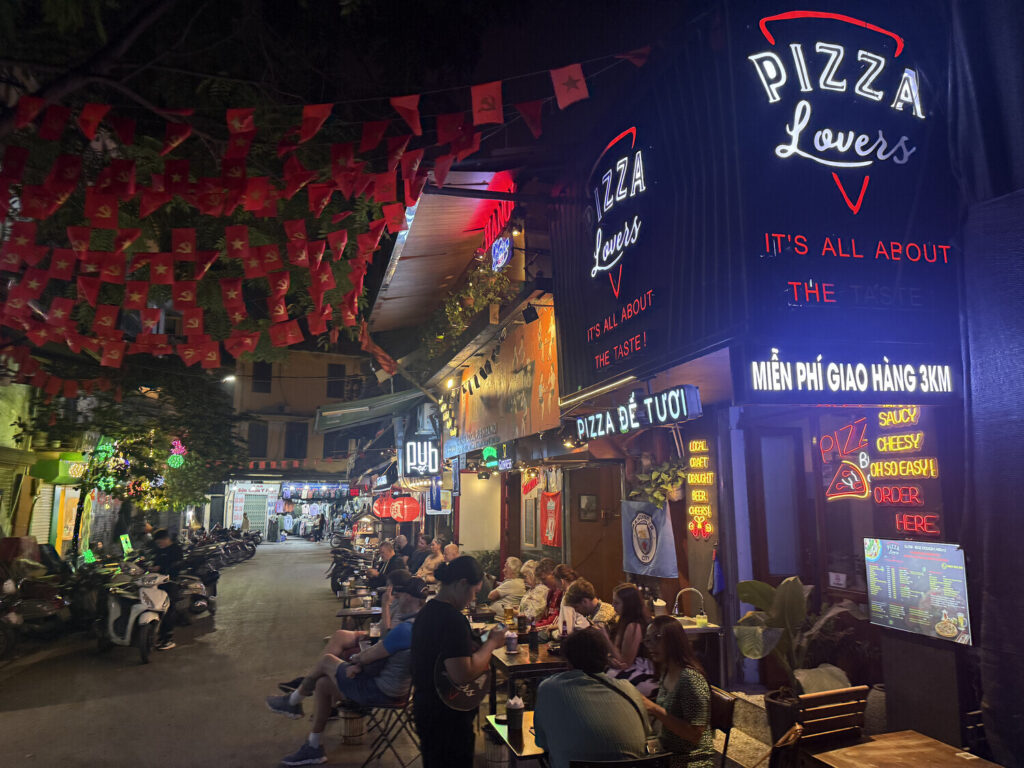 A las 21:30 nos fuimos de la pista de patinaje y queríamos buscar un lugar para cenar, pero como el centro comercial cerraba a las 22:00 ya estaba casi todo cerrado o cerrando. Así que nos tomamos otro taxi para volver a Hoàn Kiếm.