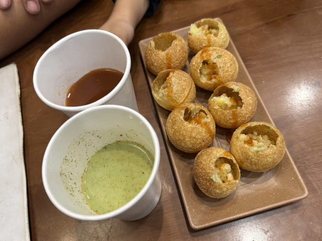 A las 20:00 fuimos a cenar a Mr. Tet, el restorán de comida india al que ya habíamos ido una vez antes. Pedimos unos panipuri y unos paratha. Al igual que la otra vuelta, invité yo (₫190k; ~6€).
